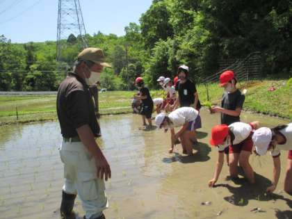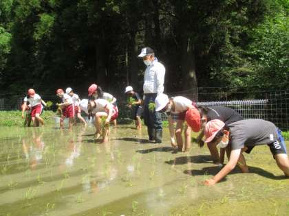 記事のアップが遅くなりました。子どもたちが田植えをしている様子をお伝えします。
