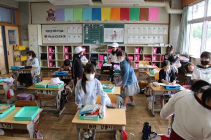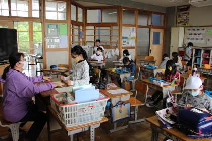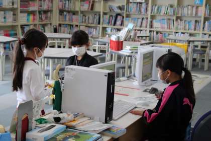 図書室では、毎日貸し出しをしており、多くの子が利用します。
