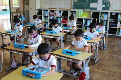 タブレットPCの家庭での実用化に向けて奮闘中です。本日は、タブレットを使ったオンライン朝の会&健康観察を行いました。