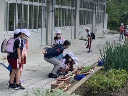 今日の様子 公開日 2021/05/18 更新日 2021/05/18 お知らせ 天気予報が少し変わり、朝から日差しが厳しい天気となりました。しかし、夕方には傘マークもあるので、天気の変化には注意したいですね。 今日は、朝の活動の様子をお伝えします。各学年の花壇の世話や生長の確認をしています。今日は天気が良かったので、外で元気よくあいさつ運動もできました。