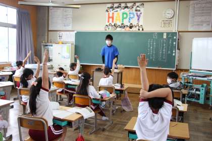 今日の様子4 公開日 2021/05/20 更新日 2021/05/20 お知らせ 3年生の授業の様子です。いつも積極的に挙手する姿が印象的です。音読の時は、「指読み」と言って、読んでいるところを指さして読む子も見受けられます。これも有効な手立ての一つです。体育の授業では、縄跳びをペアでアドバイスし合いながら進めています。