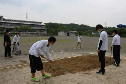 本日、午前中に新体力テストの屋外種目を行いました。それに伴い、昨日小雨の降る中、教師が準備を行いました。