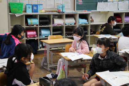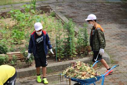 今日の様子2 公開日 2021/05/28 更新日 2021/05/28 お知らせ 4年生の教室に「はらぺこあおむし(英語でもバージョン)」がありました。作者のエリック・カールを偲んで、絵本の紹介がありました。5年生はペアの話し合いです。感染対策のため距離を置いての話し合いとなっていますが、友だちとの意見交流はとても大切です。あすくす学級は、大切に育てた玉ねぎの収穫です。朝市や授業参観等の場面で販売し、多くの方に食べてもらえるようにがんばっています。