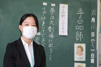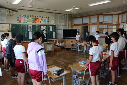教育実習生研究授業(6年道徳) 公開日 2021/06/09 更新日 2021/06/09 お知らせ 3週間の教育実習ですが、本日がちょうど中日になります。今日は、道徳の研究授業を行いました。とても落ち着いており、子どもの意見をしっかり引き出すなど、まだ大学生とは思えないくらい、いい授業でした。教師の希望者が減りつつありますが、早く仲間となって活躍してほしいものです。