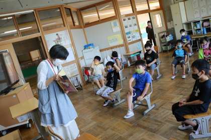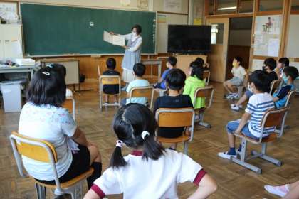 昨日の記事となりますが、いしぼらさんによる低学年の読み聞かせ「おはなしでてこい」が行われました。