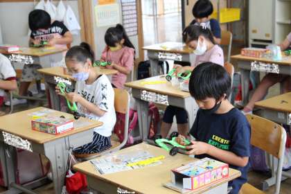 授業での「ものづくり」の様子です。あすくすの生活単元プラバン、3年生の理科教材、4年生の図工作品です。