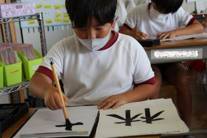 授業の様子です。1年生は国語、4年生は書写、5年生は理科の授業です。