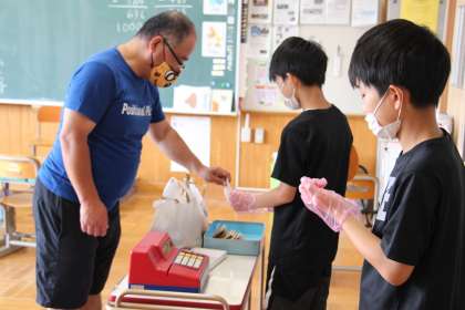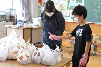 あすなろ・くすのき学級の児童が育てた玉ねぎとジャガイモを、「あすくす屋さん」で販売しました。事前にレジの練習や接客の仕方を学び、生き生きと活動できました。