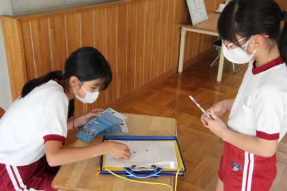 石畳王決定戦2 公開日 2021/06/21 更新日 2021/06/21 お知らせ 体育館や体育館テラス、廊下に昇降口等、いろいろな場所に代表委員が配置され、その場にまつわる問題が出題されます。児童は、正解を求めて周りを見回しながら考えています。