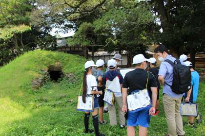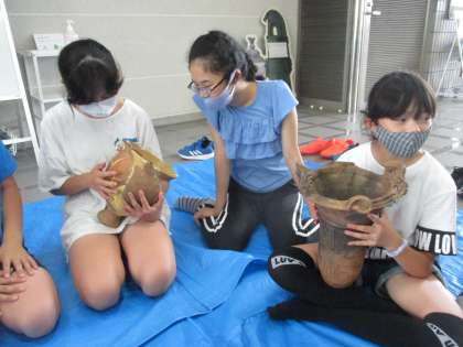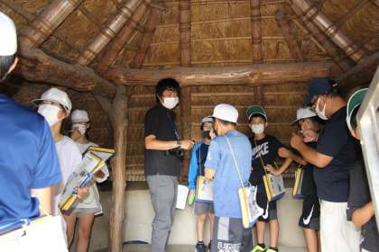 6年生社会見学 公開日 2021/06/30 更新日 2021/06/30 お知らせ 本日、6年生が郷土資料館と曽根遺跡を見学しました。文化財課の方の指導の下、縄文・弥生時代の服を着たり、土器を触ったりして、歴史を肌で感じました。 午後からは、曽根遺跡にて前方後円墳や住居跡、復元した竪穴式住居を見学して、古の生活を想像しながら、学びました。教科書やタブレットPCでは伝えきれない実物のよさを感じました。