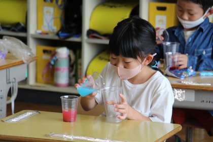 今日の様子 公開日 2021/07/01 更新日 2021/07/01 お知らせ 1年生の「色水づくり」です。二色の色水を作り、それを混ぜたらどんな色に変化するのかを楽しみました。子どもたちの表情に注目してください。