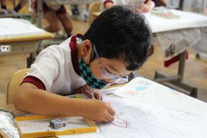 今日の様子 公開日 2021/07/02 更新日 2021/07/02 お知らせ 本日は、雨が心配されましたが、全員無事に登校できました。ご協力ありがとうございました。 1年生の図工の授業です。描いた下絵の輪郭をクレヨンでなぞる授業でした。きれいに仕上げるためには輪郭をきちんととってから色付けをさせたいのですが、早く仕上げたいと、すぐに色塗りをしてしまう子もいて、奮闘していました。