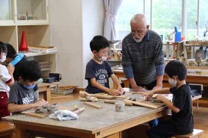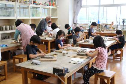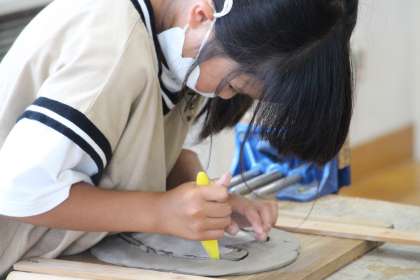 陶芸最後は2年生です。「お皿」づくりを行いました。形や模様、ふちを付けたりと、様々なお皿が出来上がりました。