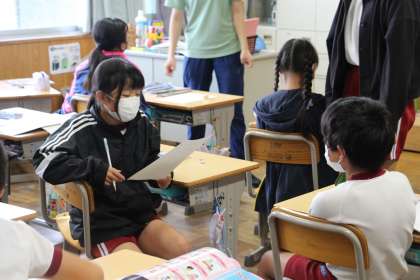 5年生の外国語の授業です。「What subject do you like?」の授業です。ペアで練習するなどして、自信をもって質問や回答できました。