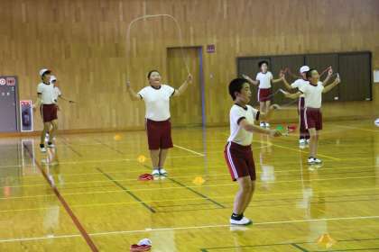 6年生体育 公開日 2021/07/06 更新日 2021/07/06 お知らせ 本来は、外で鉄棒の予定でしたが、天候の関係で室内での運動となりました。今どきの体育らしく、音楽を流しながらのランニング、音楽に合わせてのなわとびと、しっかり汗を流しました。 担任も、子どもたちの周りを踊ったり、声をかけたりしながら、ノリノリでランニングをしていました。