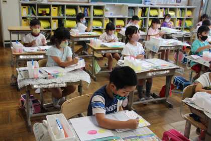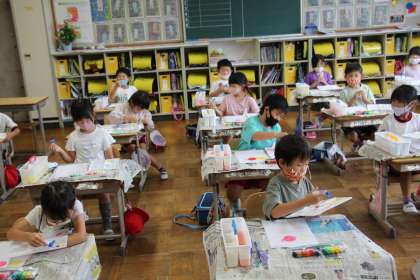 さて、急な予定変更ではありましたが、図工の学習に前向きに取り組むことができました。絵具の水彩の基本ですが、「薄く塗ること」がポイントです。どうしても濃く塗ってしまう子が多く、私もそうだったな…と昔を思い出しました。