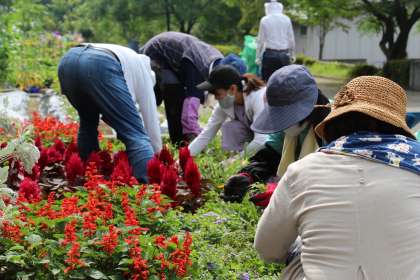 本日も朝から「いしぼら」さんに学校園の整備をしていただきました。暑さが厳しくなってきたので、熱中症にも気を付けながら活動していただきました。