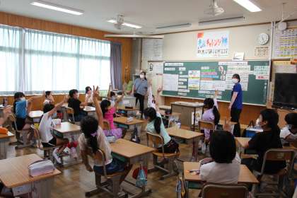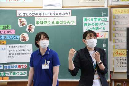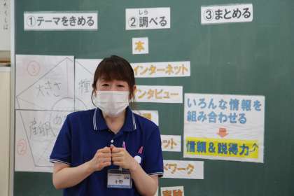 4年生は「調べる学習」を、図書館管理課の3名の講師の方に教えていただきました。分かりやすいお話で、子どもたちはもちろん、担任の先生も大いに勉強になったと喜んでいました。いい学習ができましたね!