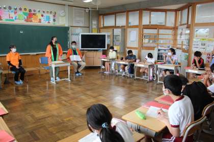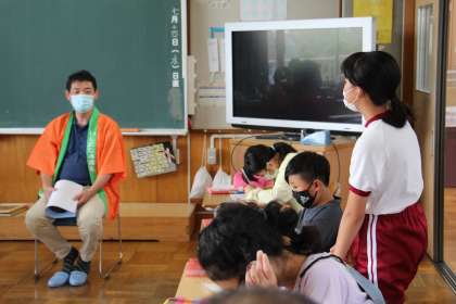 「みんなでえがこう、石畳の未来」をテーマに、6年生が石畳について学ぶ学習を行いました。講師は、足湯や地元のことをよく知ってみえる3名の方に依頼し、石畳の歴史、足湯や朝市などの観光、小学生に期待することなどについてお聞きしました。