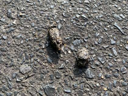 まず、まだ生きていて動いているけれど、腹の部分は食べられているクワガタです。今朝、子どもたちが持って来てくれました。カラスに食べられた後ですが、しばらくは動いています。ハクビシンのフンらしきものもよく見かけます。子どもたちが一生懸命に育てている野菜も、食べごろになると野生動物の餌食に…。彼らもおいしい時期を分かっているのです。