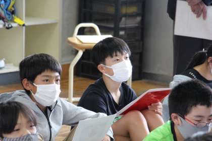 DVD視聴の後、会長さんからお話を聴きました。子どもたちは、真剣なまなざしで話を聴くことができました。