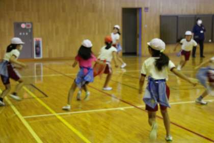 4年生は、「しっぽ取り」を行っていました。私の専門は体育ですが、「子どもの体力の維持、増進のためにお薦めの運動は何ですか?」と聞かれたときには、「ドッジボール」と「しっぽ取り」と答えています。