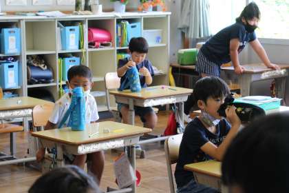 2年生はテストでした。テスト終了後、授業の途中ではありましたが、水分補給を行いました。