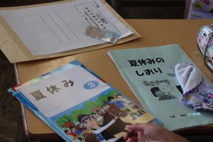 この暑さを体験すると、夏休みの意味も理解できます。夏休み前日の今日は、すべての学年で休みの過ごし方や宿題、提出物の説明がありました。写真は、3年生の様子です。