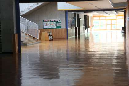 夏休みに入り、すでに8月となりました。校舎内に子どもたちの姿はなく、他校に比べてとても広い廊下ではありますが、さらに広く感じます。