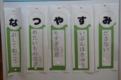 今日は曇りがちの日ですが、校舎内の気温はご覧の通りです。特に2階に上がると、暑さでムッとします。夏休みも中盤に差し掛かりましたが、子どもたちは元気に過ごしているでしょうか。夏休み前の全校集会で養護教諭から話があった「なつやすみ」について、今一度ご確認いただけたらと思います。
