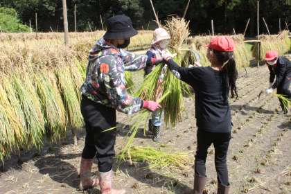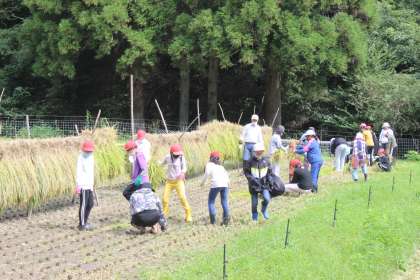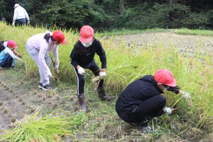 本日、5年生が稲刈り体験の学習を行いました。コロナ禍のため、実施するかどうかも含め検討した結果、感染対策をしっかり考えた上で行うことにしました。