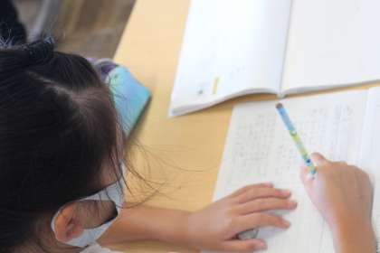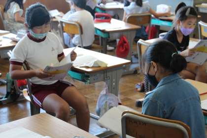 3年生の国語は、詩の学習でした。詩を味わうために、まず自分の手で詩を書き写す視写を行いました。その後、ペアの子と音読をして互いの表現方法を聴きながら、味わいを深めていました。