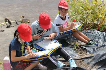 自然特集の最終は、3年生の理科です。学級園の花などの観察をしました。私がそばに行っても気づかないくらい集中して取り組んでいました。