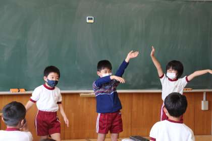 今日の様子(9/21) 公開日 2021/09/21 更新日 2021/09/21 お知らせ 2年生の国語です。体を使って文を表現しました。次は、3年生の体育です。担任が体育主任ということもあり、全児童の体力向上を考え、日々取り組んでいます。鉄棒運動の準備運動として、ぶら下がって体をゆする運動を行っていました。秋ではあるものの、気温は30度を超える暑さでした。