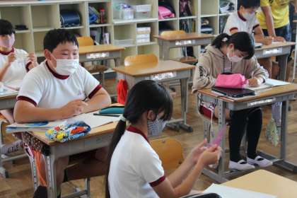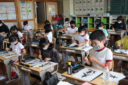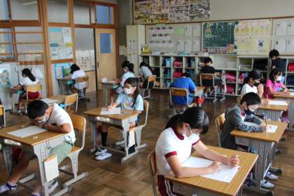 今日の様子2 公開日 2021/09/21 更新日 2021/09/21 お知らせ 4年生はテストでした。いつも元気な4年生ですが、この時ばかりは無言で取り組みました。5年生は書写です。筆をもつと、顔つきが変わるのが不思議です。 6年生は国語でした。ものを使って表現を試みました。三角定規でたい焼き(?)を作りました。