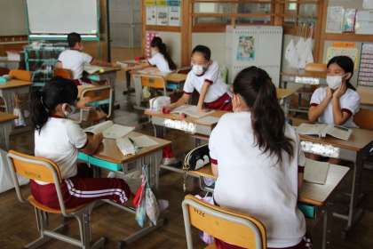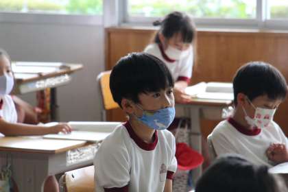 今日の様子2(9/22) 公開日 2021/09/22 更新日 2021/09/22 お知らせ 今日の授業の様子です。あすくす学級では、「誕生日お祝いお楽しみ会」でした。 3年生の国語は「グループで…」という単元だったので、ペアではない代わりに、二つの教室を使って、いつも以上に間隔をあけて取り組みました。 最後の写真は、「今日のまなざし」です。とてもいい目をしていたので、自然にシャッターを切っていました。