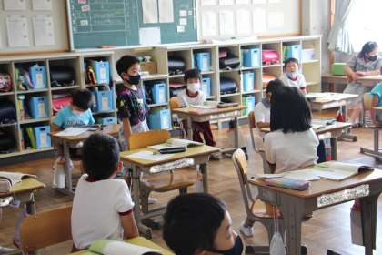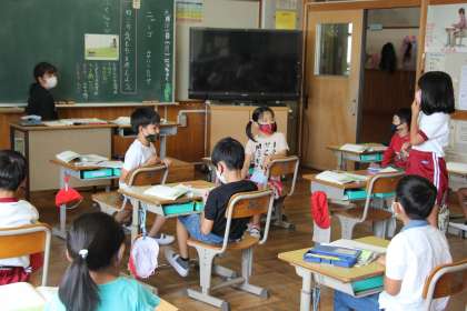 2年生の子どもたちは、友達の発言を体を向けて、しっかり聞くことができます。全校の見本となっています。