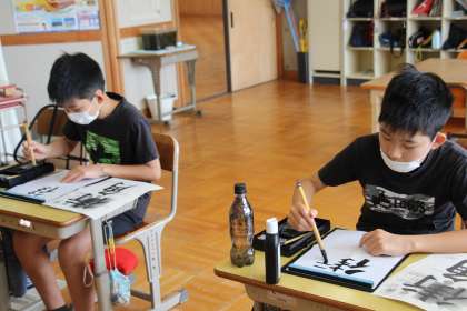 今日の様子(9/27) 公開日 2021/09/27 更新日 2021/09/27 お知らせ 今日の授業の様子です。あすなろ学級は、書写でした。「街角」という難しい字でしたが、上手に書いていました。 5・6年生は、国語の授業でした。5年生は、自分の考えをノートに、6年生は自分の考えをノート&黒板に記入していました。考えをしっかりもつために「書く」ことはとても重要です。