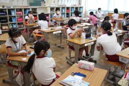 今日の様子(10/1) 公開日 2021/10/01 更新日 2021/10/01 お知らせ 今日の授業の様子です。緊急事態宣言が解除されましたが、一気に元に戻すのではなく、少しずつ取り入れていく予定です。 1年生は音楽、4年生は英語、5年生は総合の学習でした。合唱やリコーダー、調理実習等も様子をみて、再開したいと考えています。