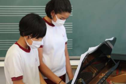 5年生音楽 公開日 2021/10/04 更新日 2021/10/04 お知らせ 5年生の音楽は、器楽合奏の練習です。それぞれ担当する楽器をもち、安全に配慮して外で行ったり、広い部屋に移動して行ったりしました。合唱についても、少しずつ始めていきたいと思います。