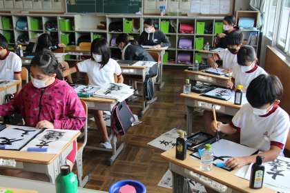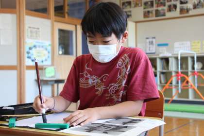5年生・くすのき書写 公開日 2021/10/06 更新日 2021/10/06 お知らせ これも昨日の記事になります。5年生とくすのき学級の書写の様子です。この時間は、いつも以上の落ち着きと心地よい緊張感の中で行われます。みんな美しい姿勢で、美しい字を書いていました。