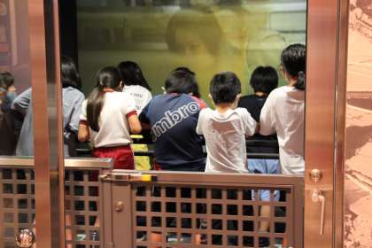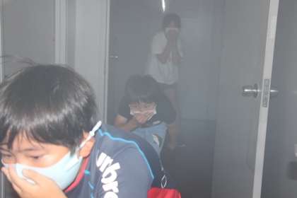 出発時は、6年生が見送ってくれました。防災学習センターでは、地震体験や煙道体験を行いました。
