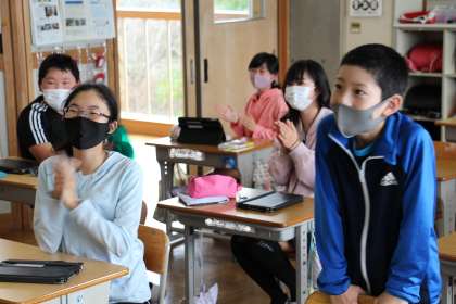 6年生の朝の会では、子どもたちの笑顔があふれていました。何かいいことがあったようです!詳細は子どもたちからお聴きください。