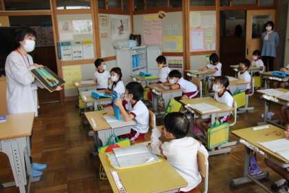お話でてこい(低学年) 公開日 2021/10/14 更新日 2021/10/14 お知らせ 緊急事態宣言中はできなかった「お話でてこい」(読み聞かせ)ですが、本日から再開しました。 まずは、低学年からスタートです。絵本の読み聞かせは、中学生でも、大人でも「しっとり」していいものです。これからも地域の方の力を借りながら、活気のある学校を目指していきます。