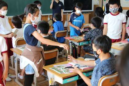 明日から6年生が修学旅行に出かけます。旅の安全を祈って、5年生が6年生に「手づくりのお守り」をプレゼントしてくれました。
