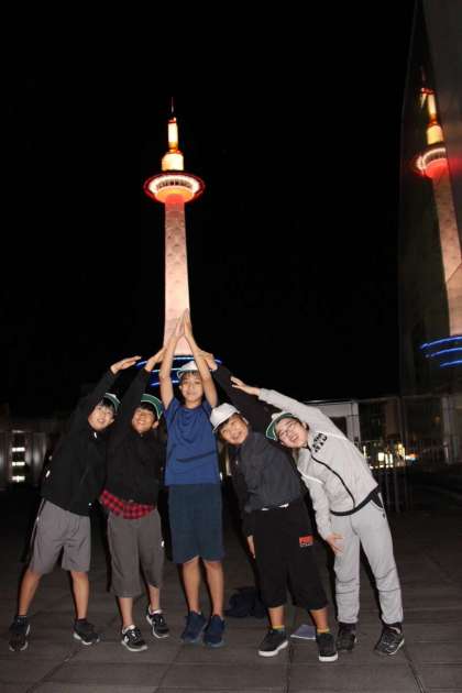 京都タワーをバックに