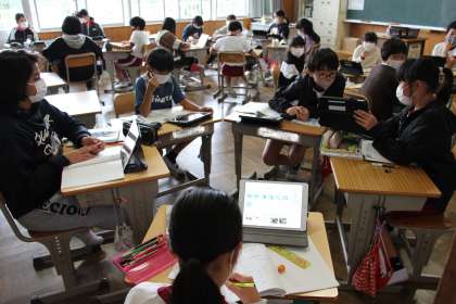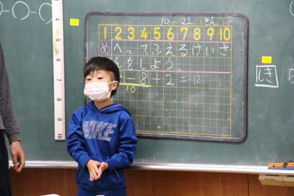 今日の様子2(10/22) 公開日 2021/10/22 更新日 2021/10/22 お知らせ 今日の授業の様子です。先ほどと同じく1年生の算数の様子です。ピンと手を挙げ、前に出て解答して、「どうですか」の場面です。 3年生は書写でした。筆遣いを意識しながら丁寧に字を書きました。5年生は、昨日行った「川の流れのはたらき」実験のまとめです。グループで検証しました。