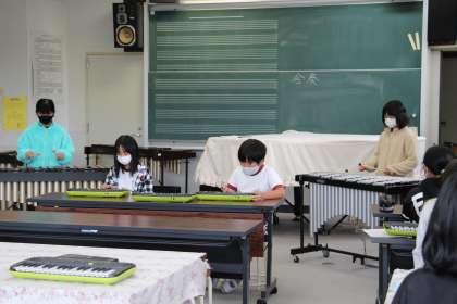 また、違う時間には、4年生も器楽合奏を行っていましたので、ご紹介します。これからは、合唱も少しずつ始めていきたいと考えています。