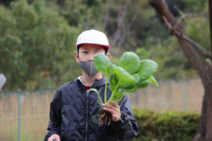 6年生小松菜の収穫 公開日 2021/10/25 更新日 2021/10/25 お知らせ こちらも金曜日の記事になります。6年生は、小松菜の収穫です。プリプリに育った、みずみずしい小松菜を収穫しました。 金曜日に持ち帰っているので、すでにお腹の中でしょうか。次は何を育てるのか楽しみですね!