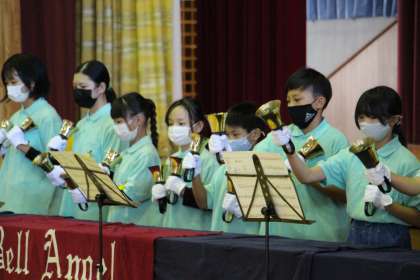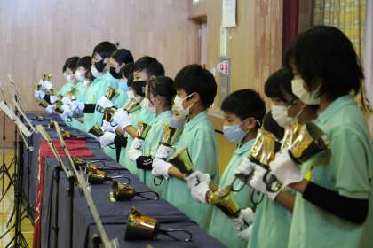 ハンドベル演奏会 公開日 2021/10/26 更新日 2021/10/26 お知らせ 本日は授業参観です。参観授業に先立ちまして「ハンドベル演奏会」を行いました。 全校児童と教職員だけでなく、多くの保護者の皆様に演奏を聴いていただきました。朝早くからのご参観、ありがとうございました。引き続き、授業参観、学校保健委員会がありますので、よろしくお願いします。